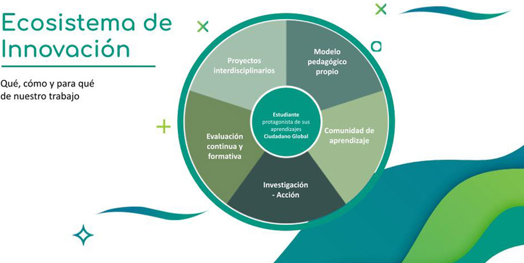 Nuestro Ecosistema de Innovación es el qué, el cómo y el para qué de nuestra tarea. Allí se encuentran plasmadas las metodologías, métodos, técnicas y herramientas que hacen posible que nuestros estudiantes desarrollen las competencias necesarias para el siglo XXI. Los estudiantes, que dan sentido a esta propuesta y son protagonistas de su aprendizaje, dinamizan este ecosistema que estimula la construcción de una Comunidad de Aprendizaje.